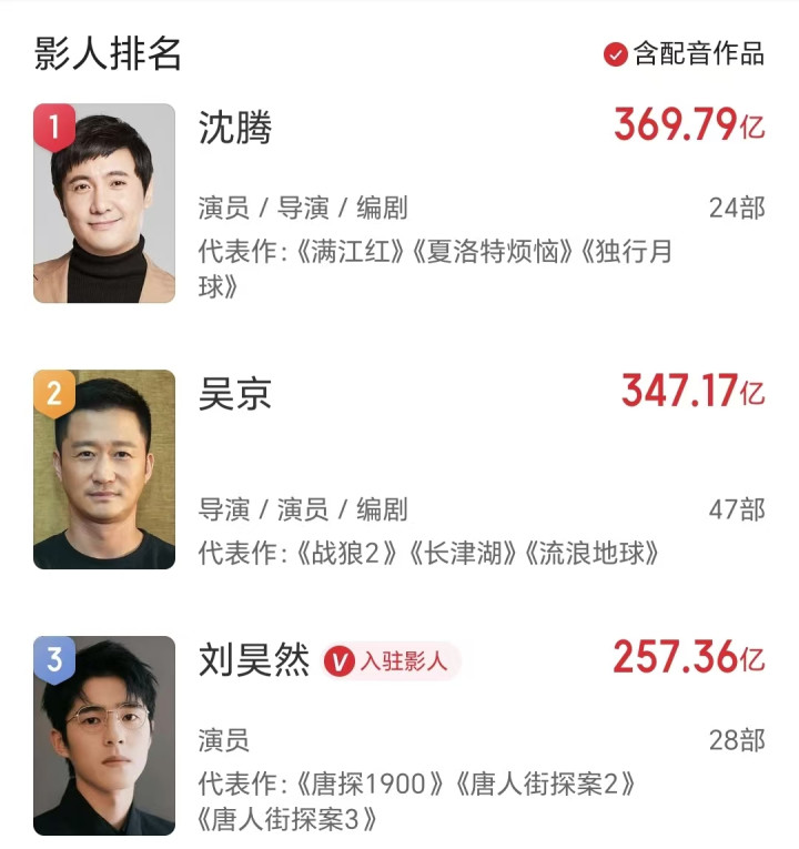 至于吴京,想要对其实现超越,将会难上加难,除非未来还会有《战狼3》。