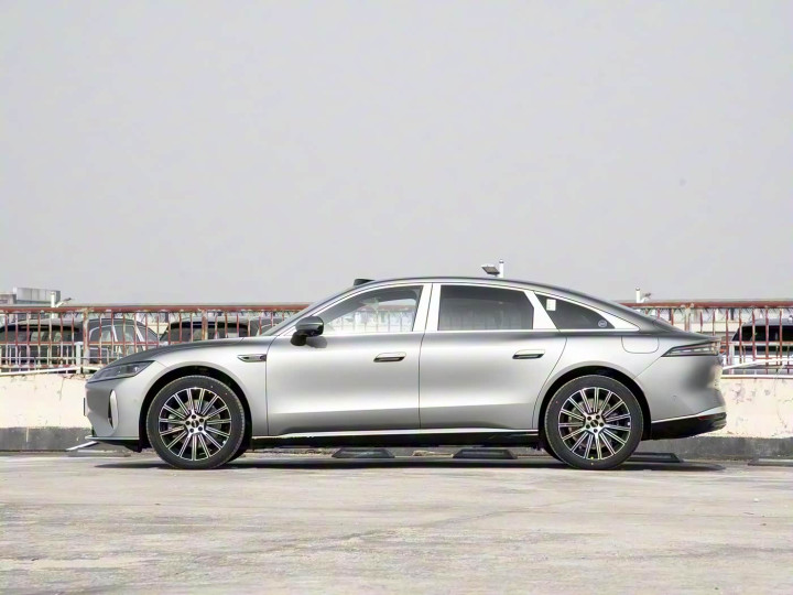 再来看车身侧面部分,侧面线条是风云A9L最惊艳的设计之一。5018mm的车长通过“御风腰线”呈现优雅动感:前轮拱上方的“弓弦曲面”向后延伸为双段式腰线,在B柱后演变为0.2mm极锐棱线,配合隐藏式门把手形成“光刃切割”般的纯净型面。20英寸“星旋轮毂”采用三叉星芒镂空设计,转动时辐条如敦煌飞天飘带般产生动态残影效果,卡钳处的“朱砂红”点缀暗藏东方审美。车顶采用全景天幕设计,紫外线隔绝率达99%,后排乘客可享受通透视野。