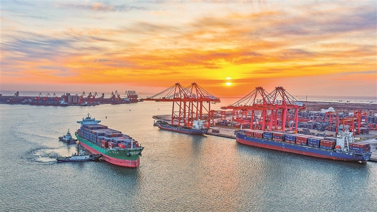 一艘货轮驶入河北唐山港京唐港区集装箱码头。新华社发